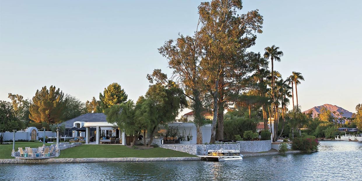 “I don’t like shoes. I never wear them if I can possibly help it,” says homeowner and interior designer Wendy Black Rodgers as she ponders her brightly manicured toes. Her barefoot bias is shared by her husband, Will, and three grown sons, Hunter, Wyatt and Rhett. Their McCormick Ranch home, which the boys have dubbed Chateau du Lac, embraces easygoing living. The decor is an eclectic mix of found objects, antiques and delightful details; doors are always open to breezes; airy rooms transition seamlessly to outdoor spaces where pillowed lounges inspire total relaxation and a green lawn meanders down to the water’s edge. Grab a cold drink, put your feet up, and stay awhile.